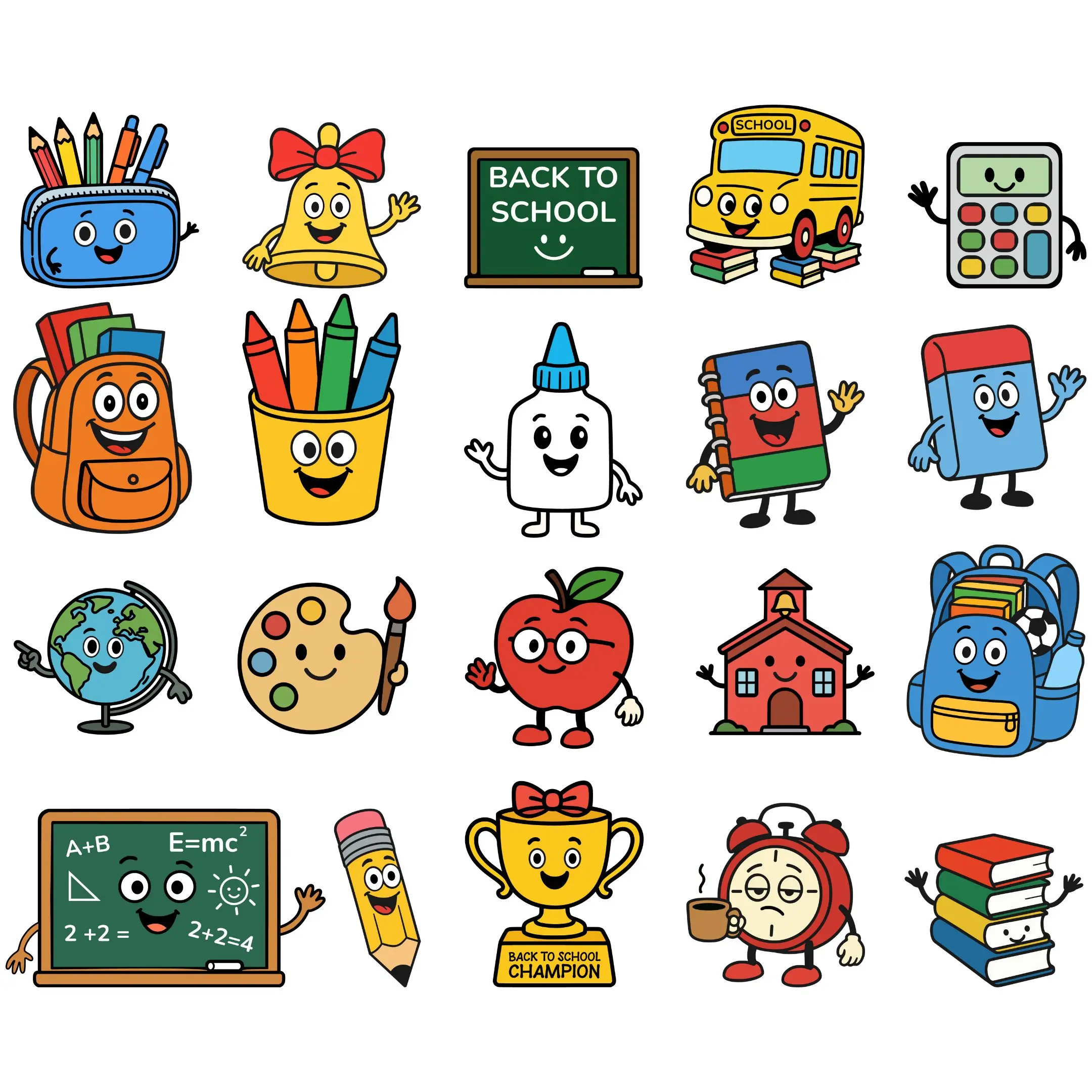 🔥 Set includes 40 Back to School cliparts – 20 in color and 20 in clean black outline style.