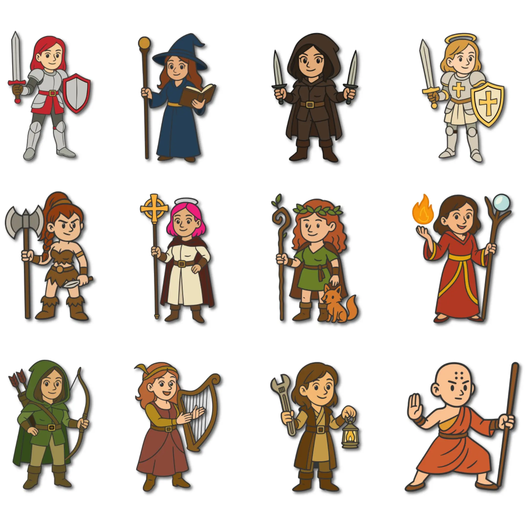 This bundle features 24 D&D Portrait Female Class Character Vector, available in both colorful and black outline versions. Each design is provided as a high-quality vector file, perfect for laser cutting, engraving, printing on apparel, making stickers, or creating unique fantasy-themed gifts. Ideal for crafters, RPG fans, and creative projects.