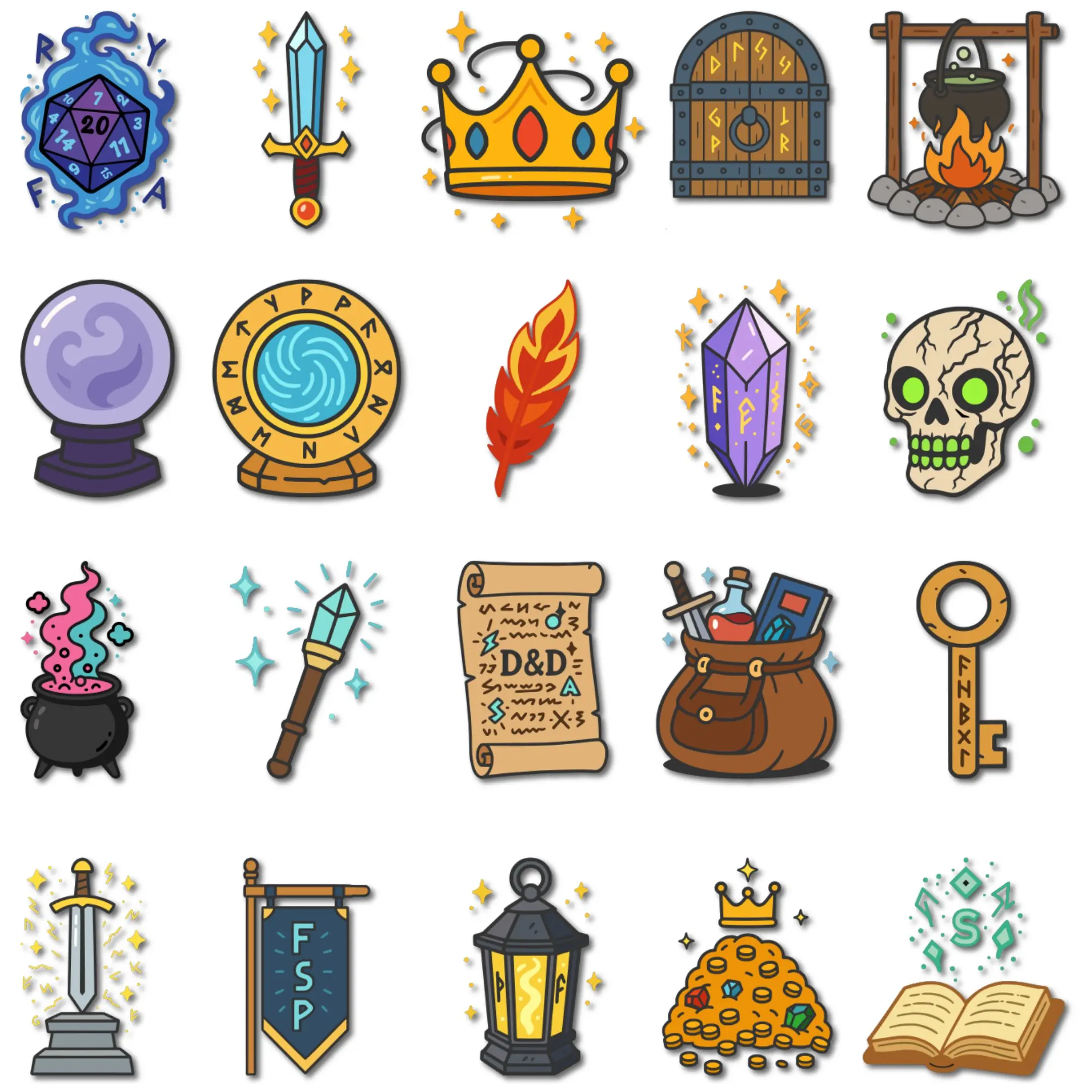 D&D Magic Items Vector – A set of high-quality vector icons representing popular Dungeons & Dragons items. Perfect for laser cutting, engraving, stickers, and custom RPG accessories. Ideal for game masters, players, and fantasy craft projects.