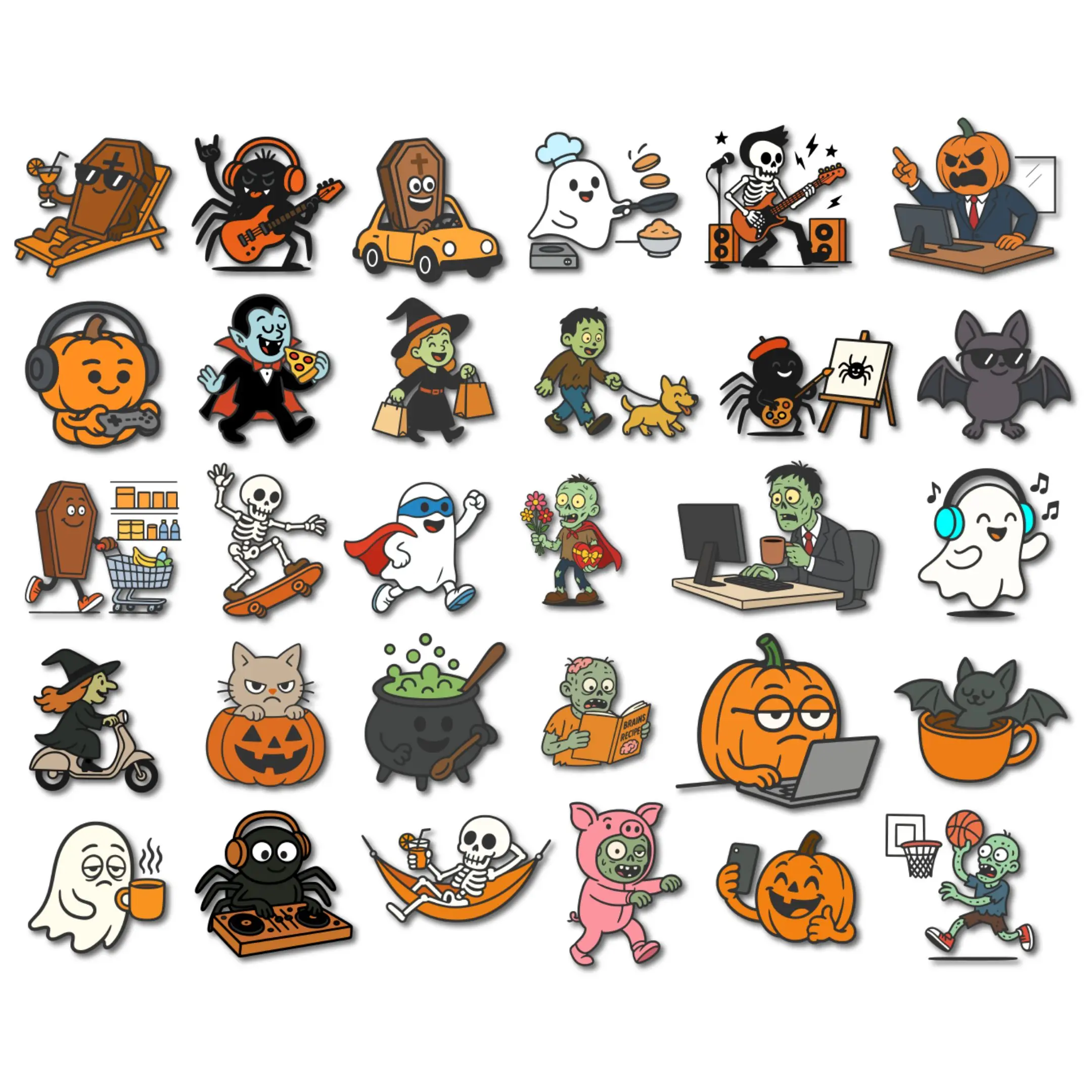 🔥 Set includes 60 Halloween cliparts & vectors in color and clean black outline style.