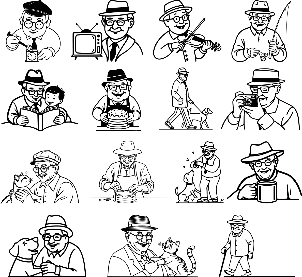 📣 12 illustrations of Grandpa in various daily activities