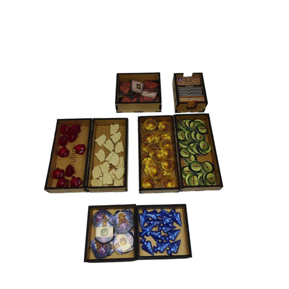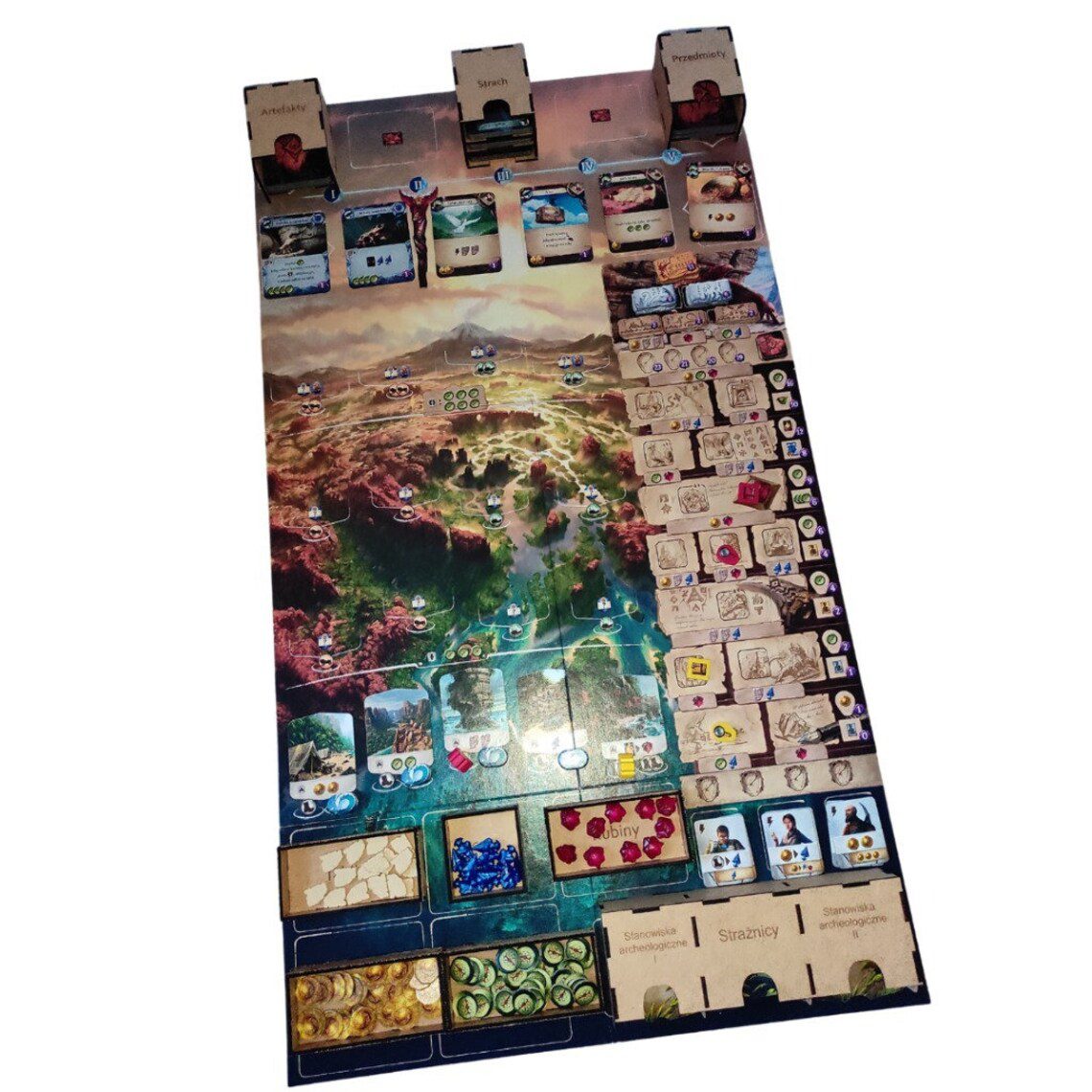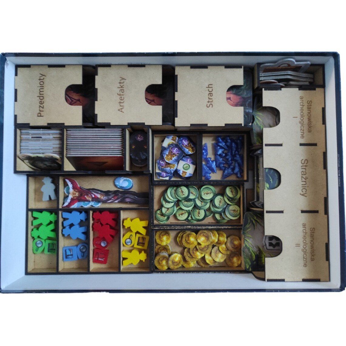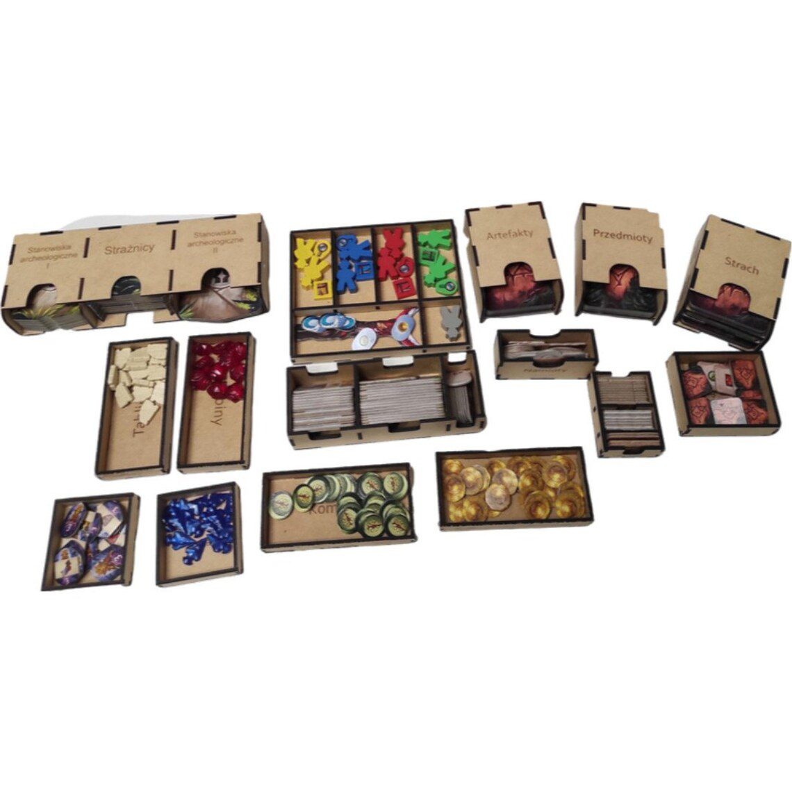 Laser cut insert for Lost Ruins of Arnak and the Expedition Leaders expansion, designed to keep all cards, tokens, tiles, and components perfectly organized. Includes dedicated trays for each game element, ensuring faster setup, easy storage, and smooth gameplay. Fits inside the original game box without the need for disassembly.